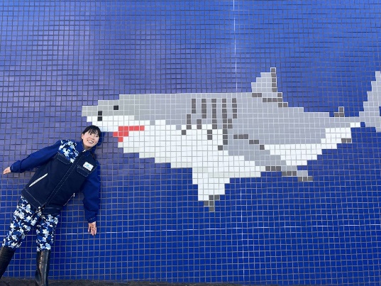 2022年入社。飼育歴4年目。サメやエイなどの板鰓類(ばんさいるい)、深海生物、タツノオトシゴを担当しています。ドルフィン ファンタジーの壁にもサメが登場していますのでぜひみなさまも写真を撮ってください!