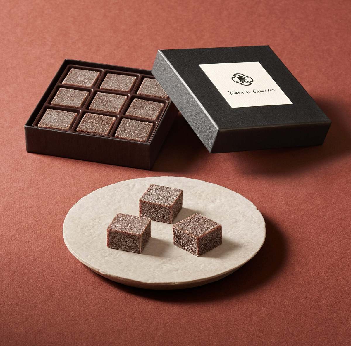 和菓子ブランドからも意外性のあるチョコスイーツを展開。『とらや』の羊羹 au ショコラ(9個入)は1,944円で、小豆とカカオの風味が絶妙にマッチした一品だ。『両口屋是清』ささらがた ちょこれーと (1個)378円は、チョコレート風味の羊羹。透き通る錦玉羹にハートの羊羹が浮かぶ。