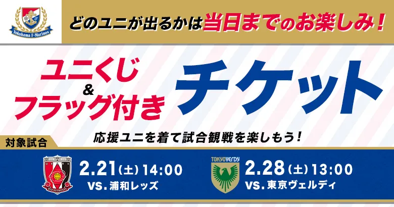 2月21日(土)に日産スタジアムで開催される明治安田J1百年構想リーグ 地域リーグラウンド 第3節 浦和レッズ戦では「RAISE THE TRICOLORE FLAG AGAIN」をテーマにさまざまなイベント、企画チケットをご用意しております。