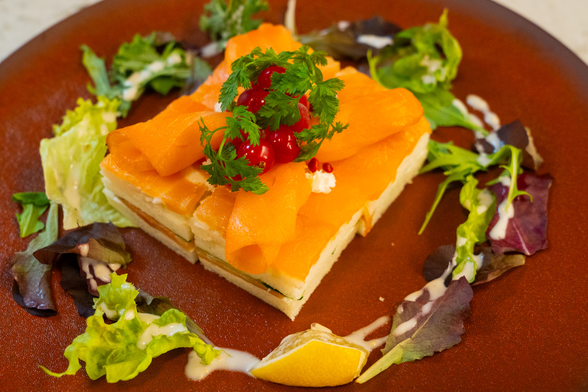 今回いただいたのは、彩り鮮やかな「アトランティックサーモンサンドイッチ」。 表面はもちろん、中にもノルウェー産のサーモンが惜しみなく使われており、しっとり濃厚な旨みが口いっぱいに広がります。特筆すべきは、一緒にサンドされたポテトサラダとの相性。まろやかなポテトがサーモンの塩気を優しく包み込み、見た目以上の満足感を与えてくれます。添えられたレモンをキュッと絞れば、さっぱりとしたまま最後まで味わえます。