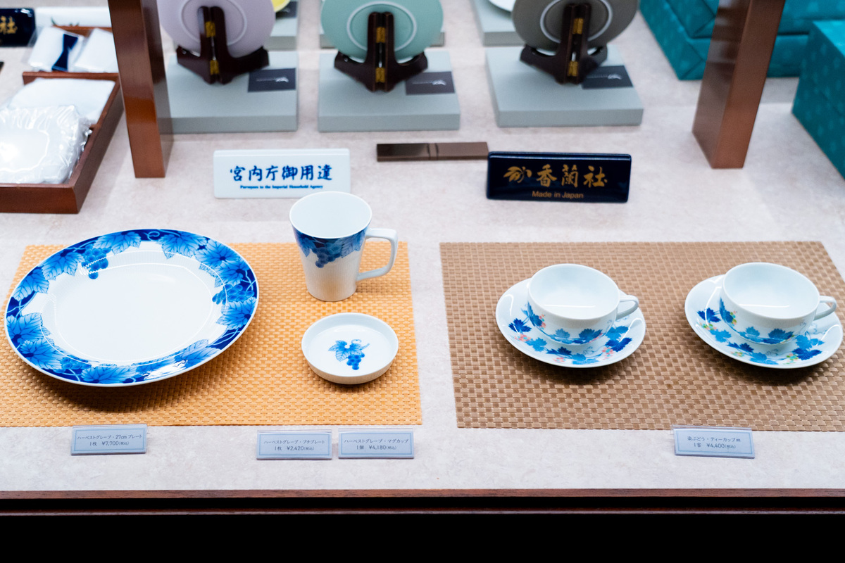 帰りがけには嬉しいサプライズも。出口には宮内庁御用達の食器が販売されているほか、なんと季節のお花のサービスがあるんです。「お好きなものを持ち帰ってくださいね」というお店の心意気に、最後まで癒やされました。