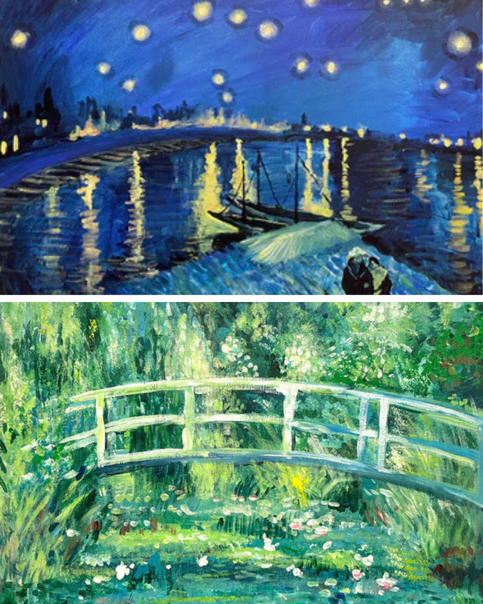 アートセッションは、ゴッホやモネの名作を120分で描くというもの。美大出身の講師陣がレクチャーするので、絵画経験がない人でも気軽に参加できる。また、ソムリエが絵画に合ったペアリングワインをセレクト。絵画の舞台や画家の想いに触れながらワインを楽しみたい。