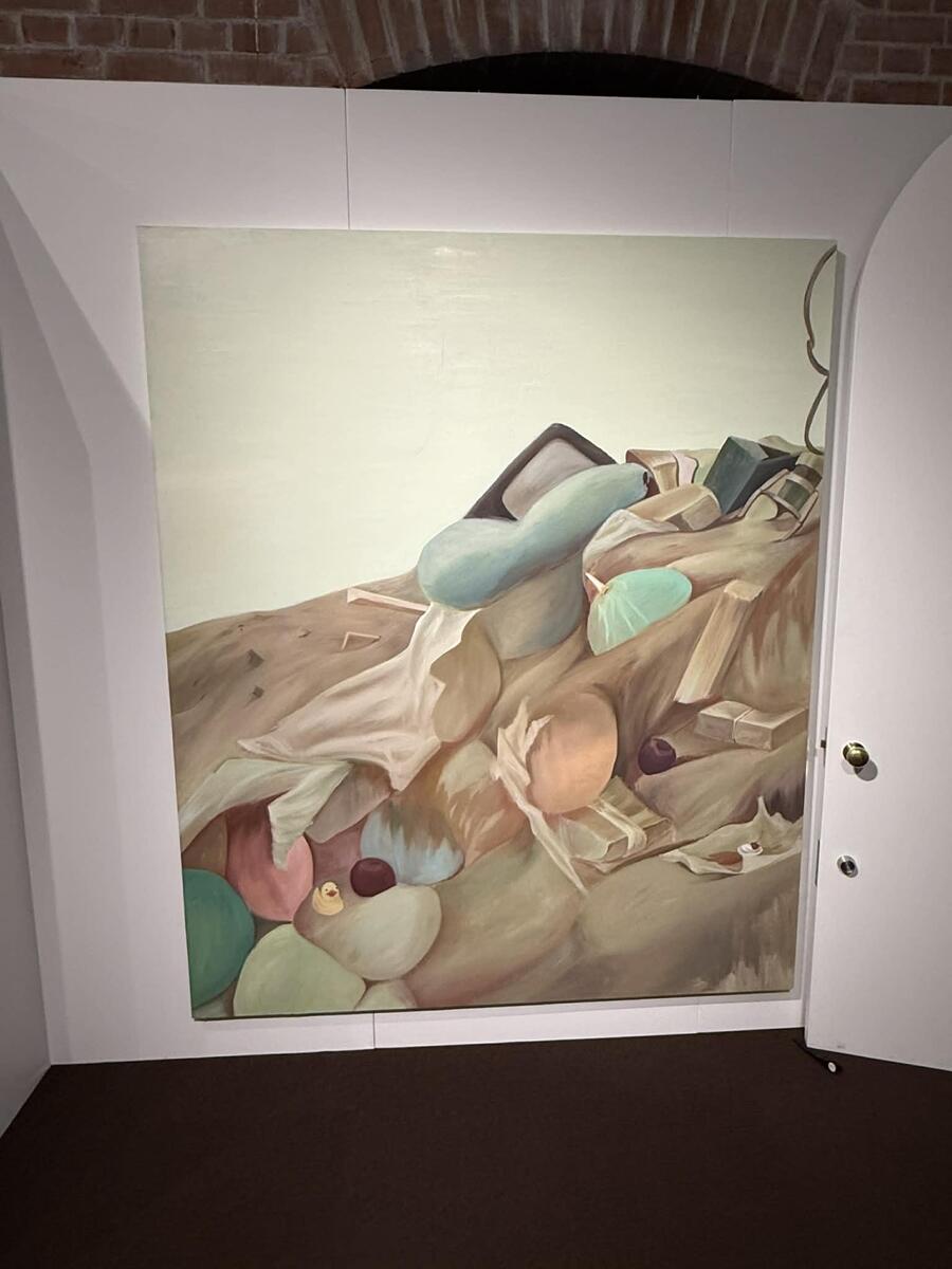 相波エリカ氏の作品は、物語を思わせる要素が随所にちりばめられ、現実から少し距離を置いた、どこか違和感のある風景が描かれている。その風景は不穏さを感じさせるが、それは生成AIやインターネット、ゲーム空間などによって現実の時空が拡張された現代社会と接続する、絵画空間の新たな挑戦でもある。相波氏自身が語る「現実に介入する無数の架空の世界」とは、私たち一人ひとりの想像のなかに存在する世界であり、一人一人が違う価値観の中、それぞれの空間を作っている。