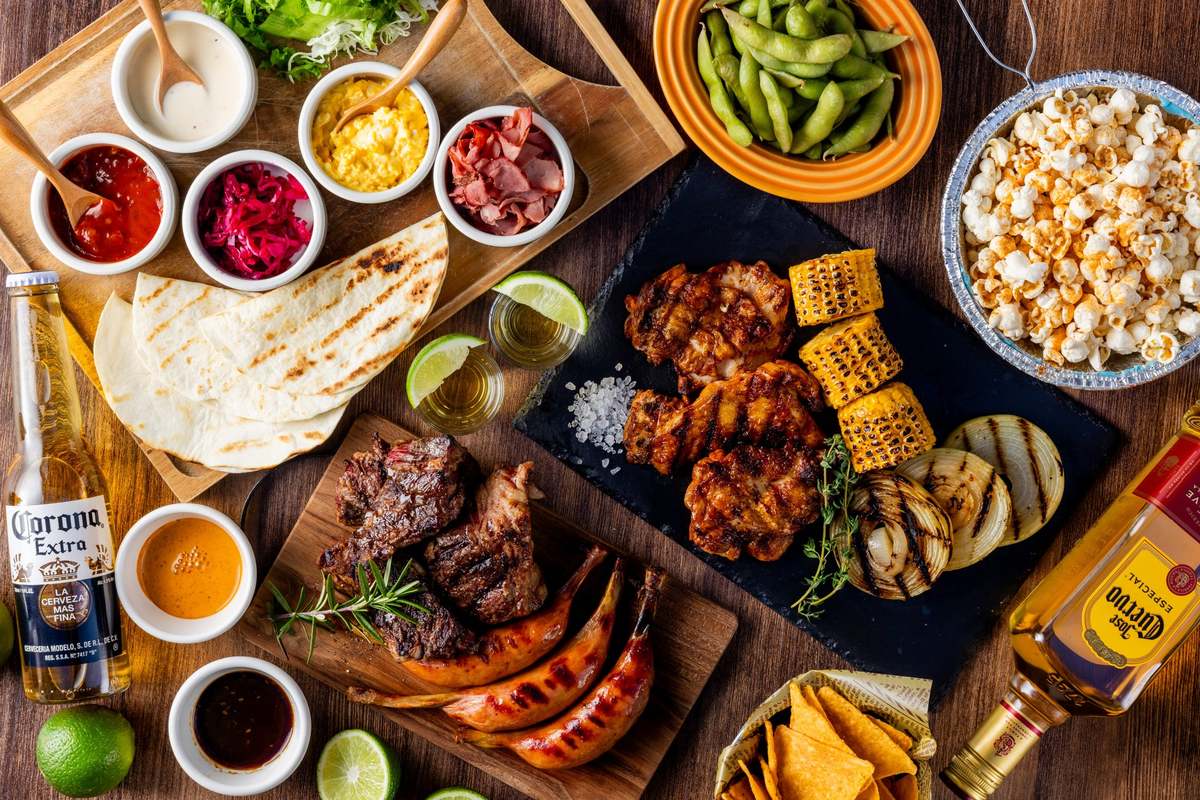 新たにアメリカン、メキシカン、プレミアムの3種類のBBQコースが登場した。アメリカンBBQコース(5,900円)は、焼きたての肉厚ハンバーグをふんわりしたバンズに自分で挟んで楽しむ体験が可能。メキシカンBBQコース(6,900円)は、トルティーヤに好きなトッピングをのせて楽しむ、賑やかなパーティースタイルだ。また、プレミアムBBQコース(8,000円)では、多彩なお肉とシーフード、ハンバーガーを一度に楽しめる贅沢な内容となっている。すべてのコースは120分の飲み放題が含まれている。