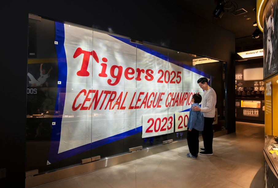 阪神タイガースが優勝を果たした輝かしいシーズンにスポットを当て、その感動を呼び起こす展示が凝縮。2023年日本一に輝いた際のペナント・トロフィーに加え、2025年セ・リーグ優勝を果たした際の貴重なペナントや展示品が登場! 当時の興奮を鮮明に思い出すことができる。