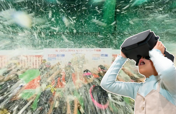 専用のゴーグルを装着すると、まるでその場にいるかのような大迫力の映像が広がる。2025年の阪神タイガースリーグ優勝時の胴上げシーンや選手たちが歓喜する祝勝会のビールかけの映像を特等席で体験しよう!