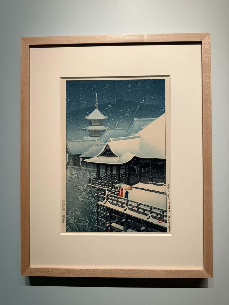 川瀬巴水作品で今回、撮影が許可されているのが、≪春之雪(京之清水)≫。巴水の作品の多くは渡邊庄三郎(渡邊版)から出版されているが、本作は土井貞一(土井版画店)から出版された数少ない名作の一つ。