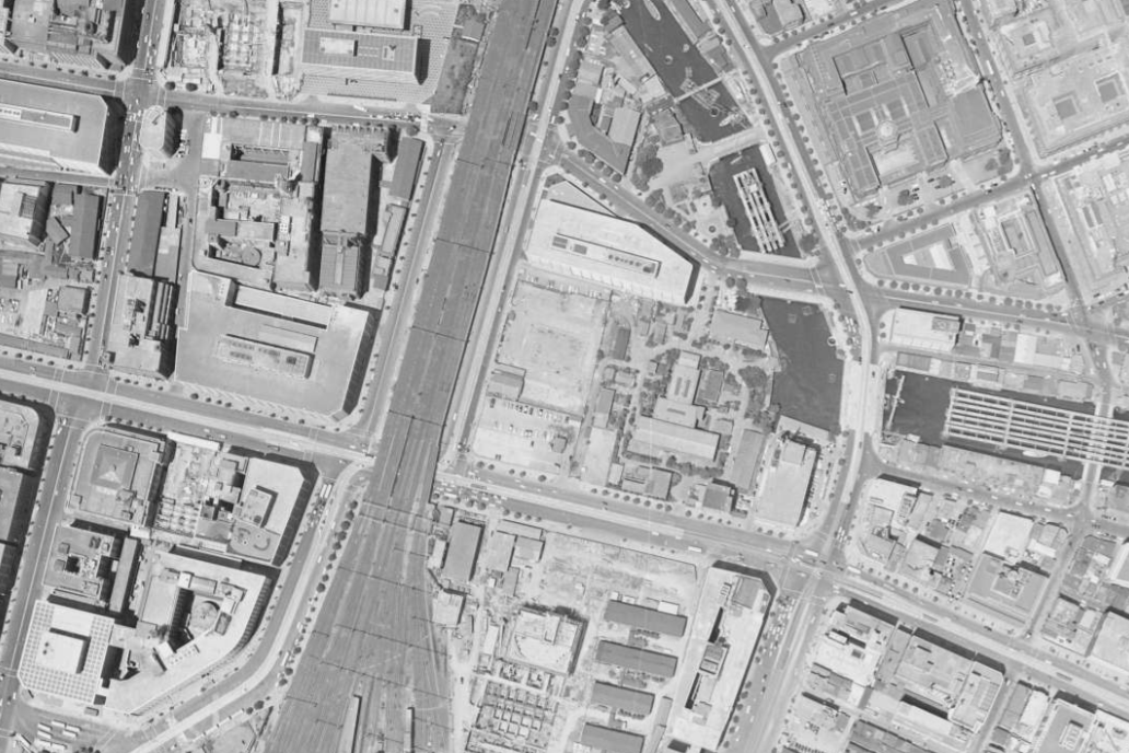 日本ビルヂングは区域南西側に建っていた大規模オフィスビルで、戦後日本を代表する大規模都市再開発の象徴的存在として建設されました。建設背景には、老朽化した市街地と下水道施設を抱えながらも、日本の玄関口として高度な都市機能が求められた常盤橋地区の課題がありました。