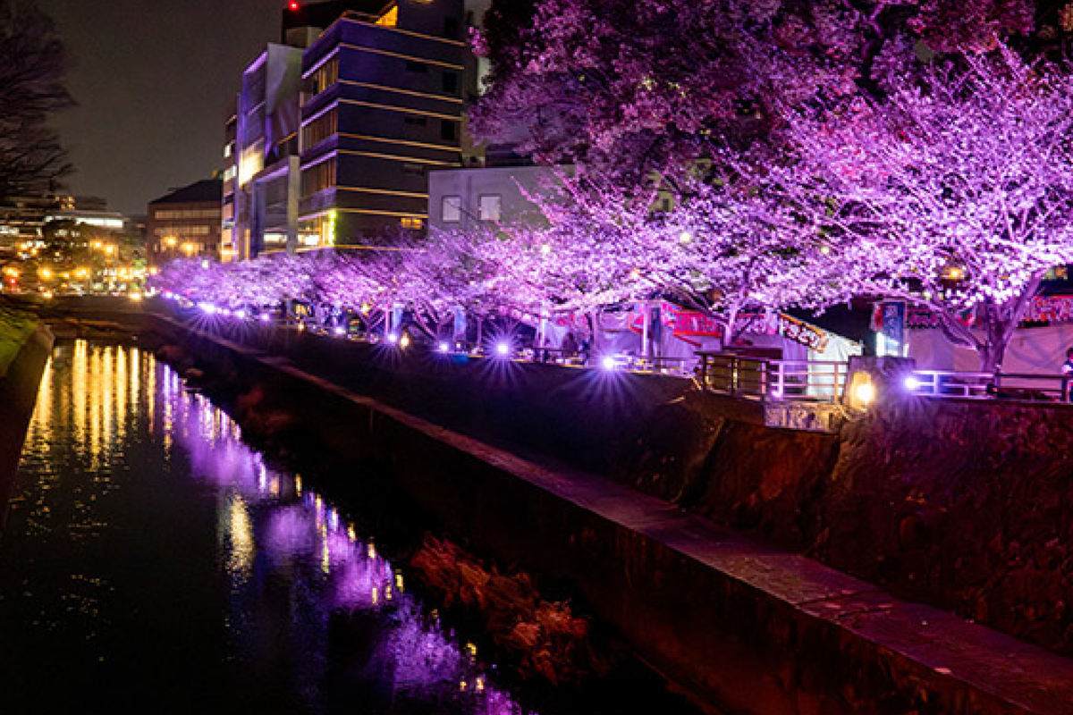2026年3月20日から29日まで、熊本城長塀前桜並木通りで「熊本城・桜ライトアップ」が開催する。開催時間は毎晩18時から22時まで。