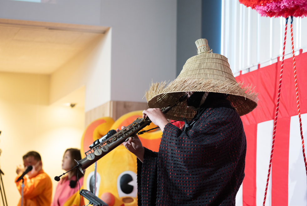 式典では、オープニングアクトとして編み笠をまとまった侍の姿でサックスを奏でるストリートアーティストで、名古屋観光特使にも選ばれている「サックス侍」による見事な演奏でスタート。中島美嘉の「雪の華」を含む、誰もが一度は耳にしたことのある名曲を披露し、花を添えた。