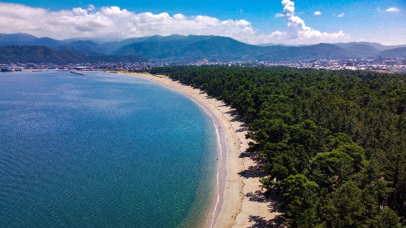 生い茂るアカマツとクロマツ、きらめく白砂、青く澄んだ海のコントラストは、息をのむほどの美しさ。「日本書紀」や「万葉集」にもその名が登場するほか、松尾芭蕉や高浜虚子らも句に残した絶景を目に焼き付けたい。また、海岸沿いだけでなく、遊歩道が整備された松林を歩くのもおすすめ。「日本の遊歩百選」にも選ばれている。