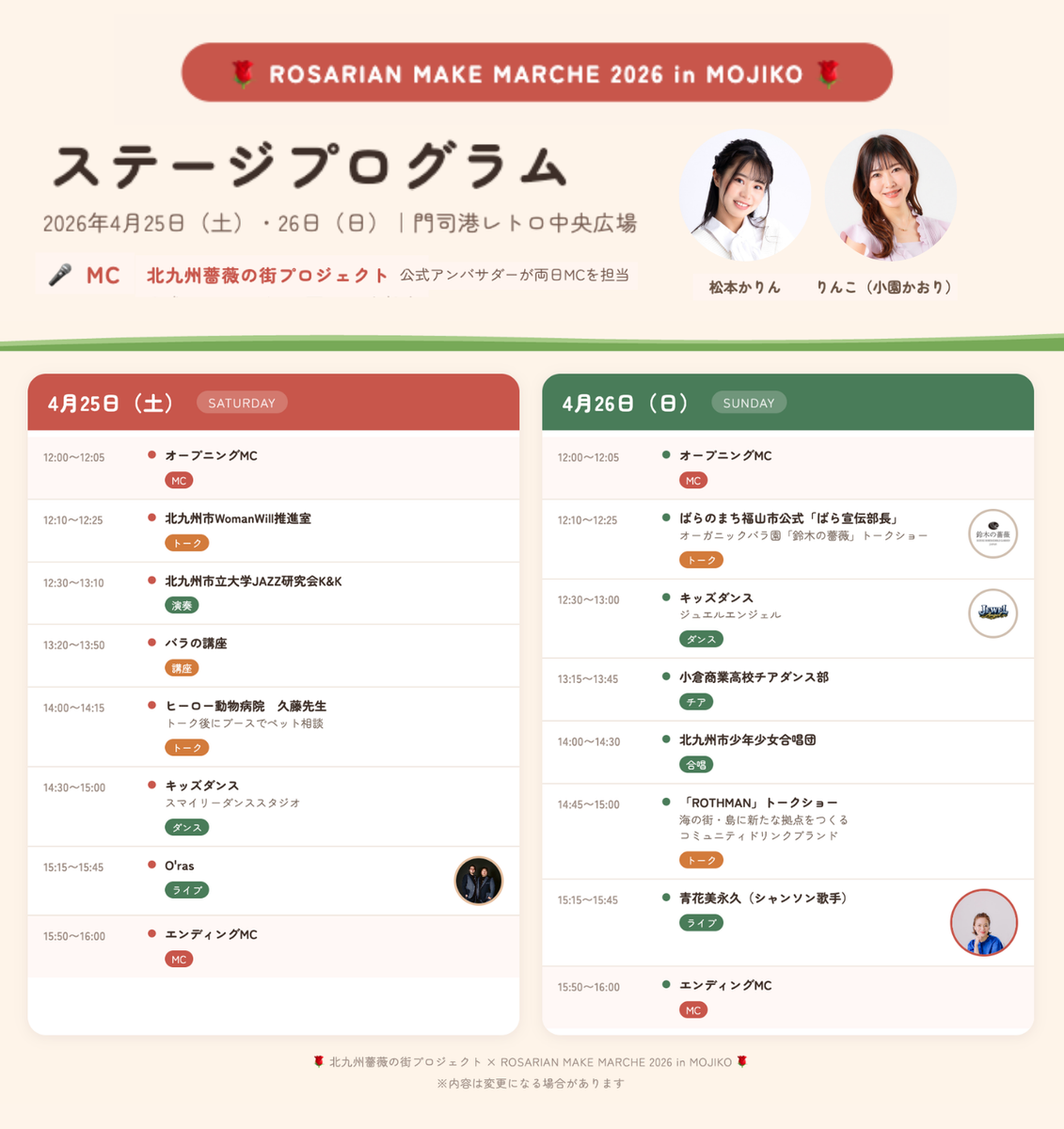 2026年4月25日と26日に、門司港レトロ中央広場で「ROSARIAN MAKE MARCHE 2026 in MOJIKO」を開催する。薔薇をテーマにしたボタニカルイベントで、薔薇やガーデニング、音楽、体験を融合した約30のコンテンツを展開する。