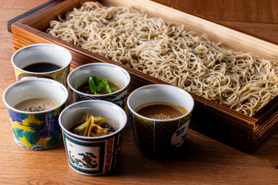 新しく誕生する『焼鳥と蕎麦 英治』は、和の食材を用いた焼鳥と蕎麦が楽しめる和食居酒屋だ。蕎麦は厳選された国産蕎麦粉を使った二八蕎麦で、豊かな香りやしなやかなコシとうまみが魅力。そばつゆにもこだわり、元となる「かえし」と出汁が蕎麦のうまみを引き立てる。さらに、多様なつゆで変化を楽しむ「囲み蕎麦」など新しい蕎麦のスタイルも提案する。