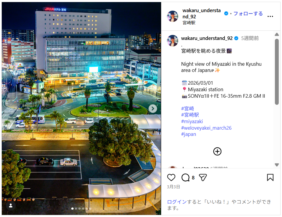 「2026年の3月、この日初めて訪れ、初めて撮影した宮崎県の夜景写真を選んでもらえてとても嬉しいです。良い思い出になりました。」
